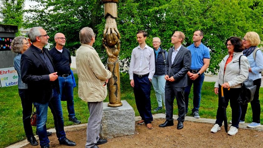 „Bereits mit unserer Ausstellung über die NS-Krankenmorde, die derzeit im Rathaus zu sehen ist, sind wir ein schwieriges und zugleich schweres Thema angegangen“, sagte Bürgermeister Christian Stalf zur Begrüßung. Mit dem Denkmal wolle die Gemeinde nun noch einen Schritt weitergehen und auch den hiesigen Opfern ein Gesicht und einen Platz in der Gesellschaft geben, so Stalf weiter. Er dankte zudem den Gästen für ihren Besuch und dem Bauhof, für das Aufstellen der Skulptur.