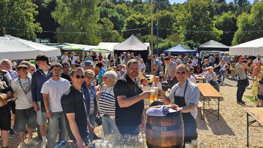 Das 47. Waldbronner Kurparkfest war wieder mal mit einer der Höhepunkte der Waldbronner Woche: Bei strahlendem Sonnenschein konnte Bürgermeister Christian Stalf mit dem Fassanstich das Fest eröffnen - tänzerisch von den Flying Petticoats und musikalisch vom Musikverein Lyra Reichenbach umrahmt. Wie immer gab es Freibier für alle, diesmal gesponsert von Ralf Störzbach vom Lindenbräu.