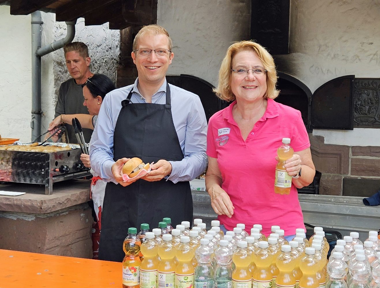 Stimmungsvolles VHS-Hoffest: Weiter ging es bei milden Temperaturen im Hof der Volkshochschule. Organisiert wurde das Hoffest in diesem Jahr zum ersten Mal von dem Tandem Heimatstuben und der Kinder- und Jugendbücherei „Lesetreff“. Ein herzliches Dankeschön für die tolle Organisation. Die Bänke waren recht schnell bis auf den letzten Platz besetzt – es zeigt mal wieder, wie beliebt das Fest ist und dass in Waldbronn gemütliche Geselligkeit großgeschrieben wird. Die „Heimatstübler“ Kurt Bechtel und Harald Jung sorgten mit ihrer volkstümlichen Musik für gute Stimmung (es wurde geschunkelt und mitgesungen), das Team um von den Heimatstuben versorgte die Gäste mit insgesamt rund 200 leckeren Flammkuchen aus dem Holzkohleofen. Das Team vom Lesetreff verkaufte Kaffee und Kuchen, gespendet von der Rösterei Sven Herzog und der Bäckerei Nussbaumer. Bis in die frühen Abendstunden blieben die Gäste denn auch bei manch gutem Gespräch sitzen.
