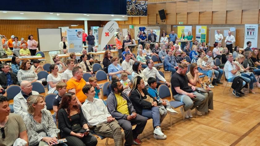 Bürgermeister Christian Stalf freute sich sehr, rund 100 Neubürgerinnen und Neubürger, darunter auch viele Kinder, im Kurhaus zu begrüßen und die Vorzüge unserer, mittlerweile 14 000 Einwohner zählenden, schönen Albtalgemeinde vorzustellen. „Waldbronn ist eine liebens- und lebenswerte Gemeinde und hat mit seinen attraktiven Angeboten im Landkreis einen sehr guten Ruf“, so Stalf. Zum einen lobte er die landschaftlich schöne Lage Waldbronns in direkter Nachbarschaft zu Ettlingen und Karlsruhe, die Vorzüge eines „Orts mit Heilquellenkurbetrieb“ wie beispielsweise die Albtherme, den Kurpark und das Freibad und zum anderen den „gesellschaftlichen Zusammenhalt“. Ein weiterer Vorteil sei auch die „wachsende Infrastruktur“ beispielsweise mit dem Nahversorgungszentrum in der Talstraße und die gute verkehrliche Anbindung zur Autobahn, aber auch an den ÖPNV mit dem MyShuttle oder den Ausbau der Elektromobilität. „Gleichzeitig lebt das Gemeinschaftsleben in Waldbronn von seinen rund 70 Vereinen und Einrichtungen, die sich mit großem ehrenamtlichen Engagement einbringen“, sagte Stalf. Nach der Begrüßung konnten sich die Gäste bei einem Rundgang durch das Kurhaus über das vielfältige Vereins- und Gemeinschaftsleben informieren. 22 Vereine und Einrichtungen aus den Bereichen Musik, Sport und Kirche, etwa das DRK, die Waldbronner Selbständigen, das Service Netzwerk Waldbronn, die Obst- und Gartenbauvereine, der Schwarzwaldverein, die Städtepartnerschaften, die Kinder- und Jugendbücherei „Lesetreff“, der Kulturring, die evangelische Kirche sowie das KiFaZ und viele weitere präsentierten sich mit Stellwänden, Flyern und natürlich im persönliche Gespräch. Bei einem kleinen Imbiss blieb genügend Zeit und Gelegenheit für ein Kennenlernen und zum Kontakte knüpfen. Und auch für den ein oder anderen Aufnahmeantrag.