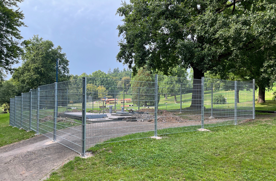 Im Kurpark, unterhalb der Minigolfanlage, befindet sich die sogenannte „Brunnenstube“ der Thermalbohrung. Der Bereich rund um die Förderstelle ist von besonderer Bedeutung für die Sicherheit und Qualität der Wasserversorgung – er muss daher zuverlässig vor Betreten und vor jeglicher Verunreinigung geschützt werden.