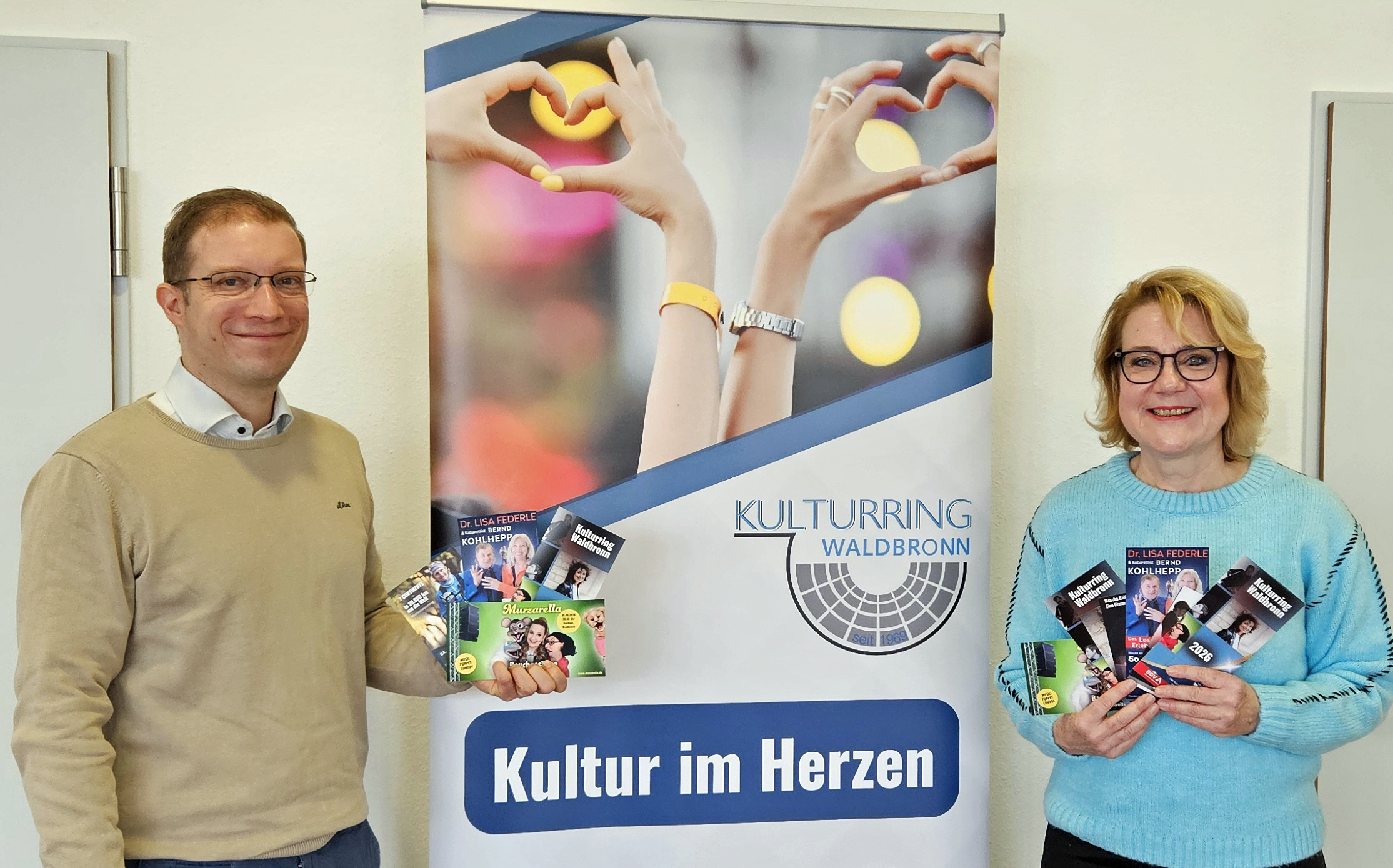 Bürgermeister Christian Stalf nahm den neuen Flyer dankend entgegen. „Ich freue mich sehr, dass mit dem Kulturring ein auch über die Grenzen Waldbronns engagierter Verein bei uns tätig ist und das vielfältige Kulturleben fördert“, so Stalf. Er sei überzeugt, dass das Programm für jeden etwas bereits hält. Er freue sich jedenfalls auf viele tolle Veranstaltungen und Begegnungen.