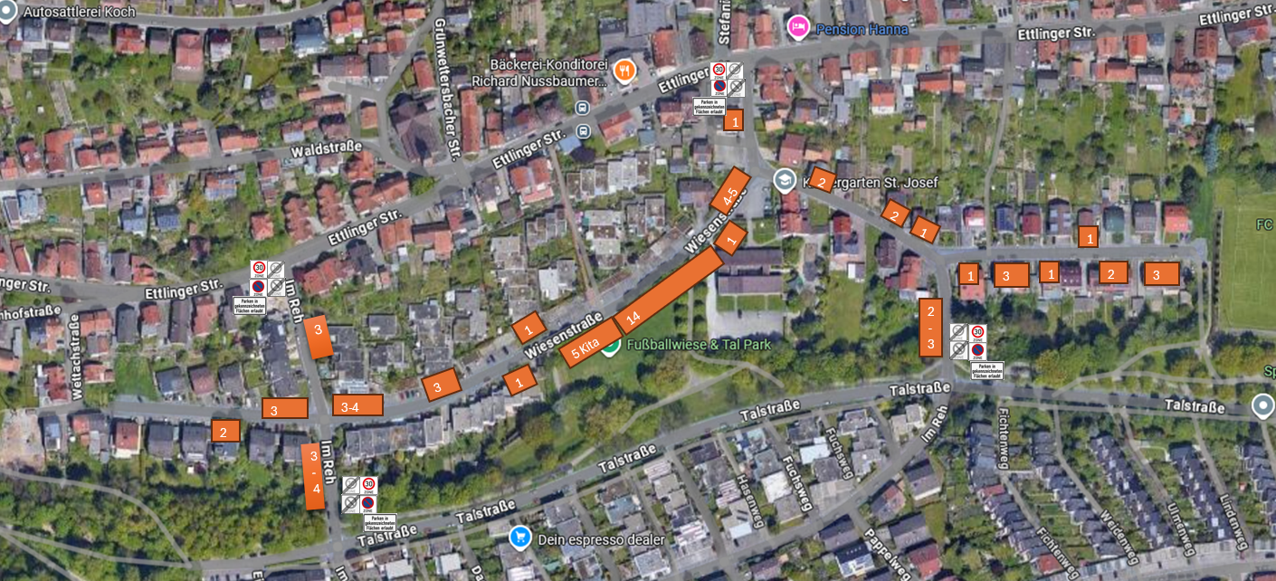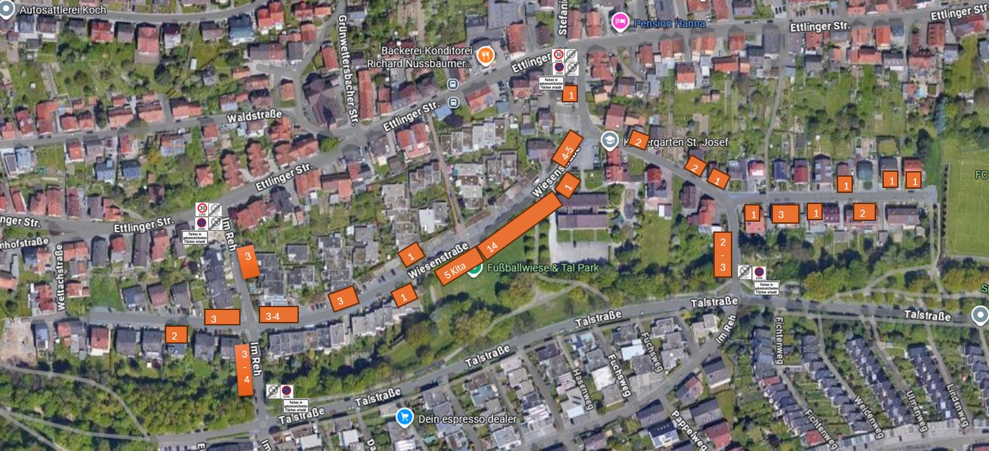 Sofern es die Witterung zulässt, werden in diesem Bereich Markierungsarbeiten durchgeführt, bei denen Parkplätze eingezeichnet werden. Hierfür wird ein beidseitiges Halteverbot für die Zeit der Markierungen eingerichtet. Hintergrund der Maßnahme ist, dass durch das derzeit wechselseitig enge Parken die Durchfahrt – insbesondere in den Abendstunden – erheblich erschwert ist. Dies kann dazu führen, dass Rettungsfahrzeuge Engstellen nicht oder nur eingeschränkt passieren können. Zudem kam es in der Vergangenheit wiederholt zu Beschwerden über das Parken auf dem Gehweg im Bereich des Kindergartens.