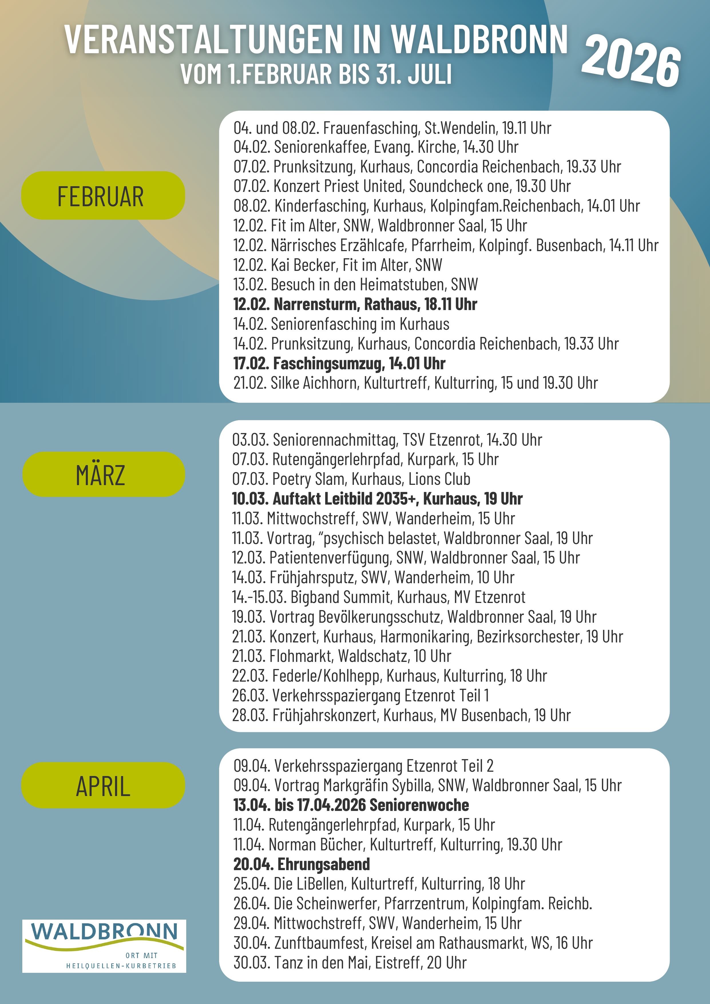 * Überblick über Veranstaltungen in Waldbronn *